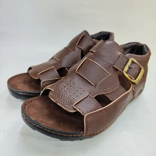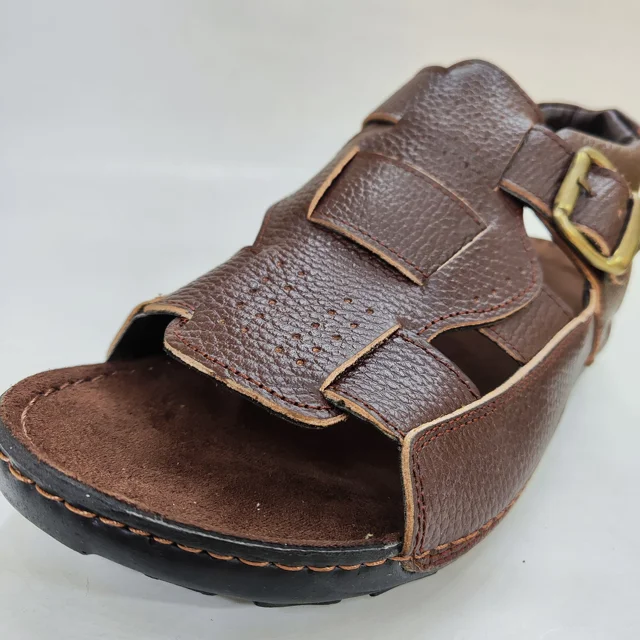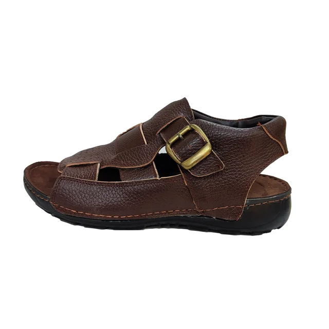 صندل مردانه چرمی با طراحی ساده و شیک، ساخته شده از چرم با کیفیت بالا برای راحتی و دوام بیشتر. کفی نرم و ضد لغزش مناسب استفاده روزمره و تابستانی، سبک و مقاوم برای حفظ استایل مردانه شما در تمام موقعیتها.